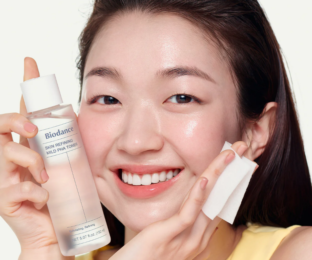 El Skin Refining Mild PHA Toner de Biodance es la forma más suave de conseguir una piel de ensueño. Su fórmula se basa en exfoliantes de última generación y contiene un 8 % de PHA, que exfolia suavemente incluso la piel sensible. El tónico elimina las células muertas, favorece la renovación cutánea y mejora visiblemente la textura de la piel sin irritarla ni resecarla. ¿El resultado? ¡Una tez ultrasuave y uniforme!