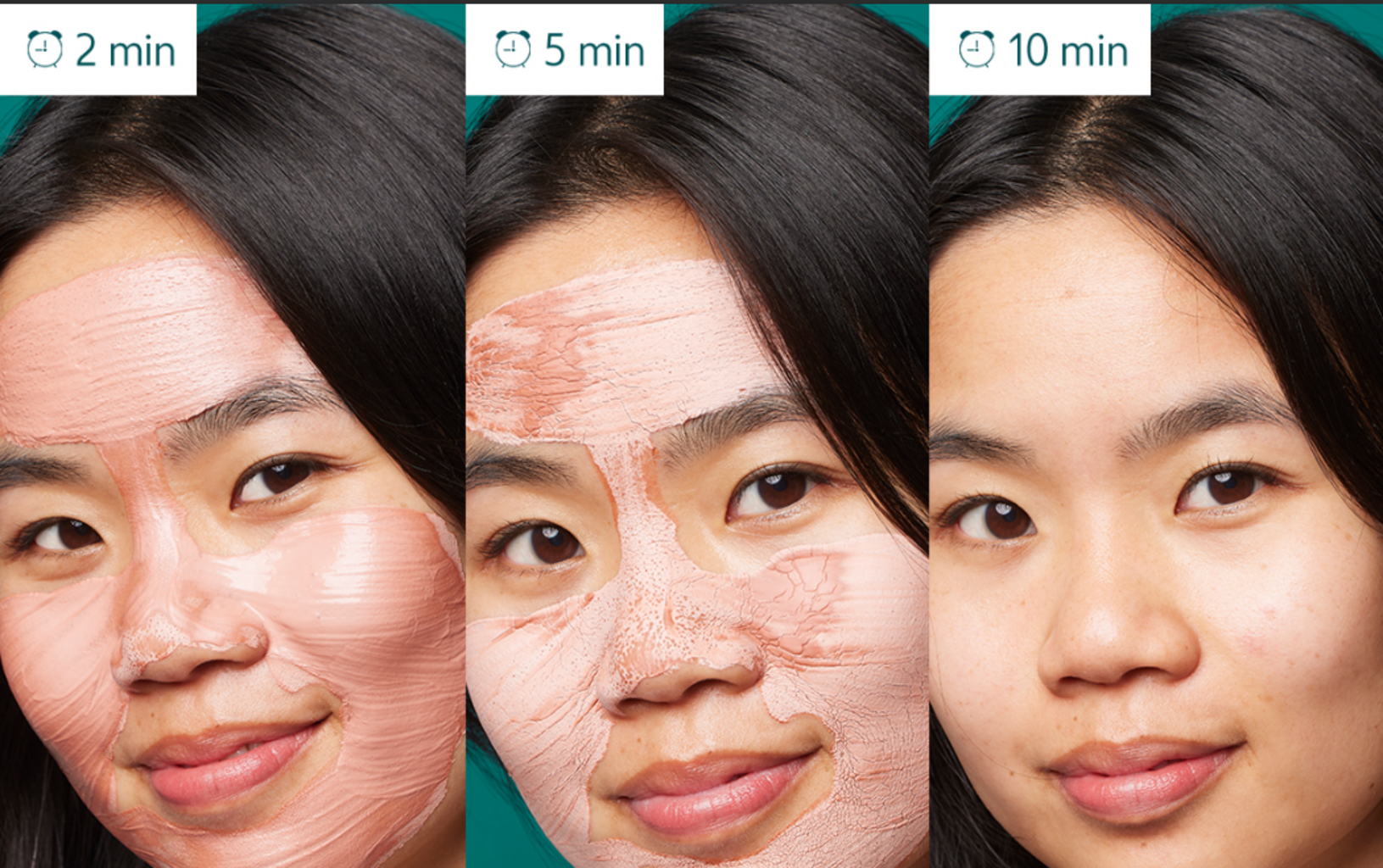Un pequeño consejo: espera 5 minutos y mírate en el espejo para ver cómo los poros se hacen visibles bajo la arcilla mientras se seca.