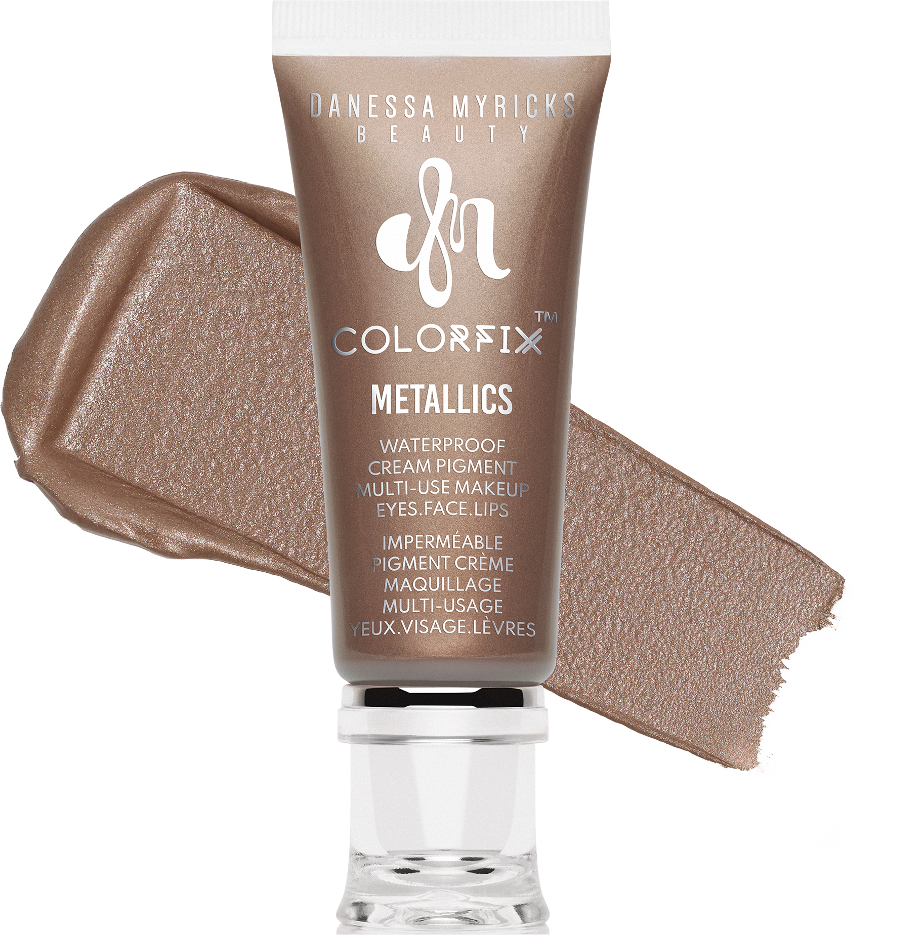Colorfix Metallics de Danessa Myricks es un producto en crema galardonado, versátil, de larga duración y resistente al agua, que se puede utilizar con total seguridad como sombra de ojos, pintalabios y colorete hasta 24 horas. El color en crema, altamente pigmentado y delicadamente brillante, también es ideal como primer, pero se puede mezclar con otros tonos para obtener un acabado personalizado. Gracias a su envase comprimible y a su punta de precisión, Colorfix ofrece la libertad de difuminar, combinar, superponer y experimentar con colores, acabados y looks.