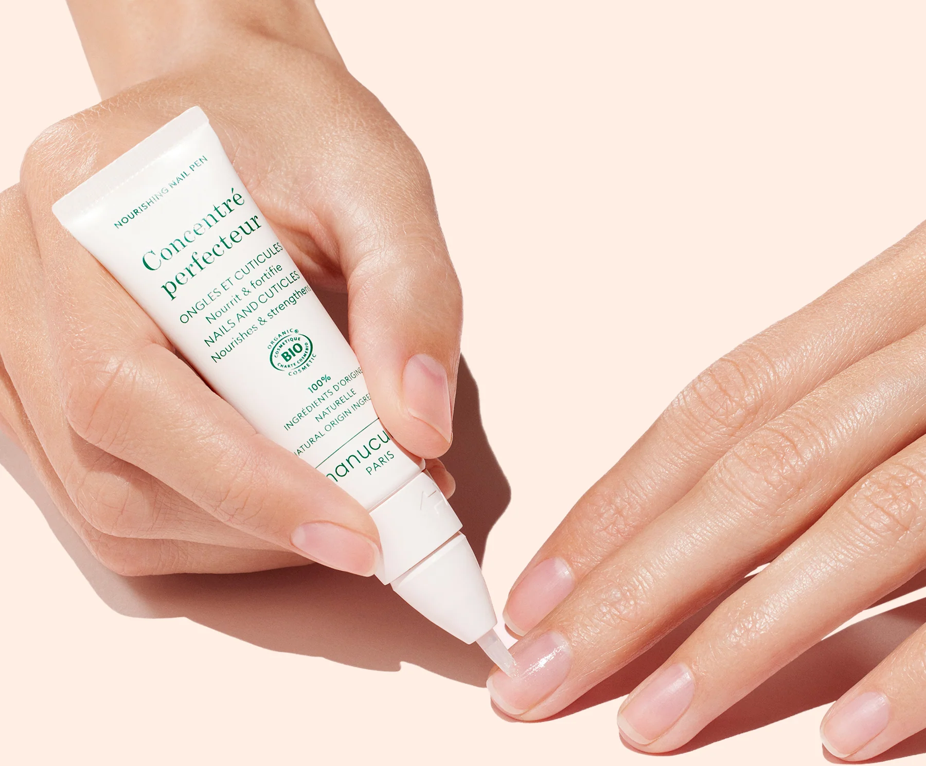 El Nourishing Nail Pen de manucurist es el compañero ideal para unas uñas perfectamente cuidadas y unas cutículas suaves, estés donde estés. Gracias a su práctico formato en forma de lápiz con punta de pincel precisa, puedes dosificar fácilmente el tratamiento altamente concentrado y aplicarlo rápidamente incluso fuera de casa. La fórmula se basa en una auténtica mezcla de principios activos: el extracto de pistacho ayuda a endurecer y fortalecer las uñas, mientras que el aceite de ricino y el aceite de girasol proporcionan una hidratación intensa y ayudan a prevenir la rotura. Enriquecido con vitamina E, el tratamiento crea un escudo protector contra los agentes externos y revitaliza rápidamente las manos estresadas. También desde el punto de vista de la sostenibilidad, el producto convence gracias a su envase fabricado con caña de azúcar 100 % reciclable. Dale a tus uñas esta mejora profesional para que luzcan cuidadas en todo momento.