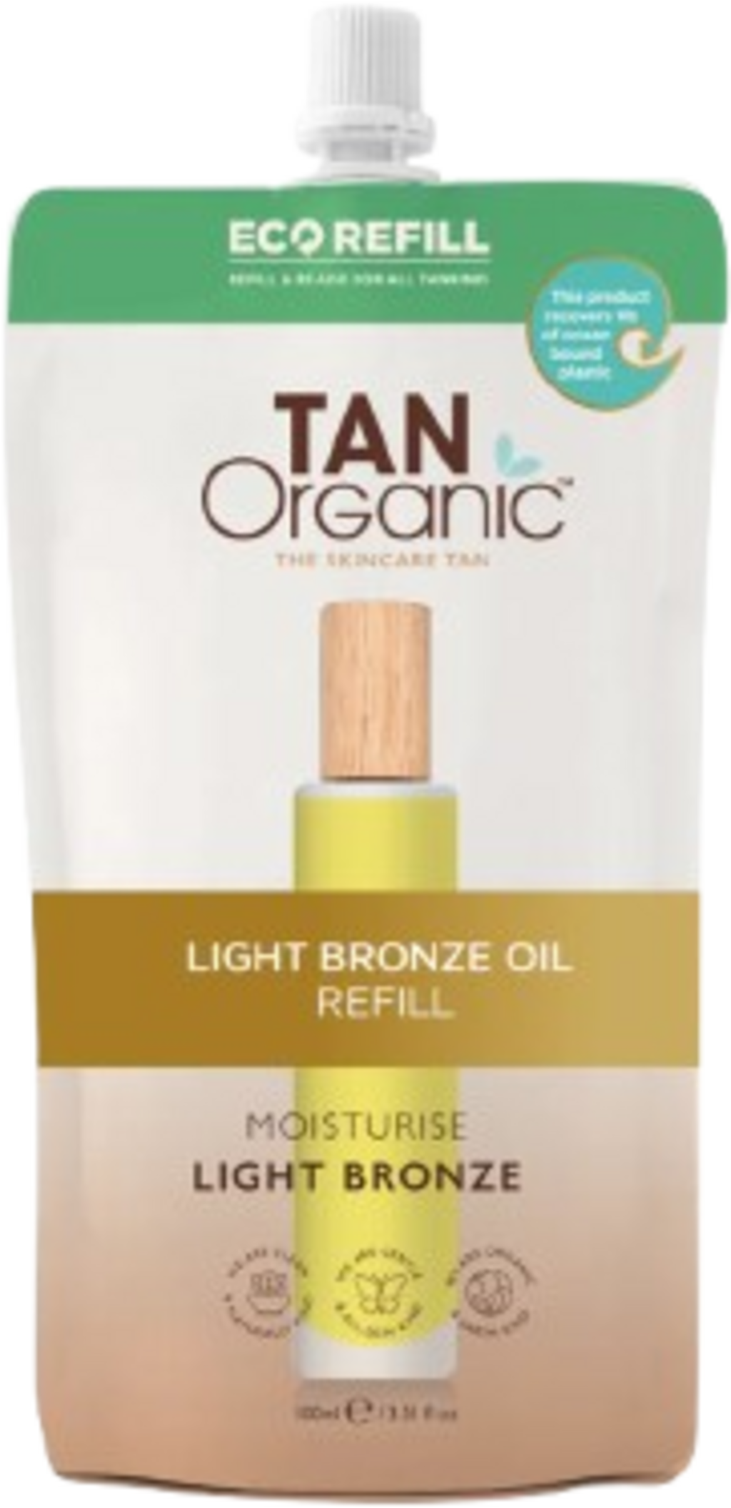 Cada bolsa de recambio Tan Organic contiene dos botellas enteras de su aceite autobronceador favorito. El revolucionario Aceite Autobronceador es un aceite ligero como una pluma, no graso, que se absorbe rápidamente en la piel, hidrata intensamente y desarrolla una tez naturalmente dorada después de 6-8 horas que dura hasta 7 días. Su fórmula con aloe vera ecológico, aceite de argán, aceite de semillas de borraja y aceite de naranja dulce deja la piel aterciopelada, le aporta un brillo irresistible y garantiza un resultado uniforme y sin imperfecciones. Gracias al sistema de rellenado, puede rellenar fácilmente su botella de cristal y reducir los residuos de plástico en el proceso. Esto no sólo hace que tu bronceado sea más bonito, sino también más sostenible.