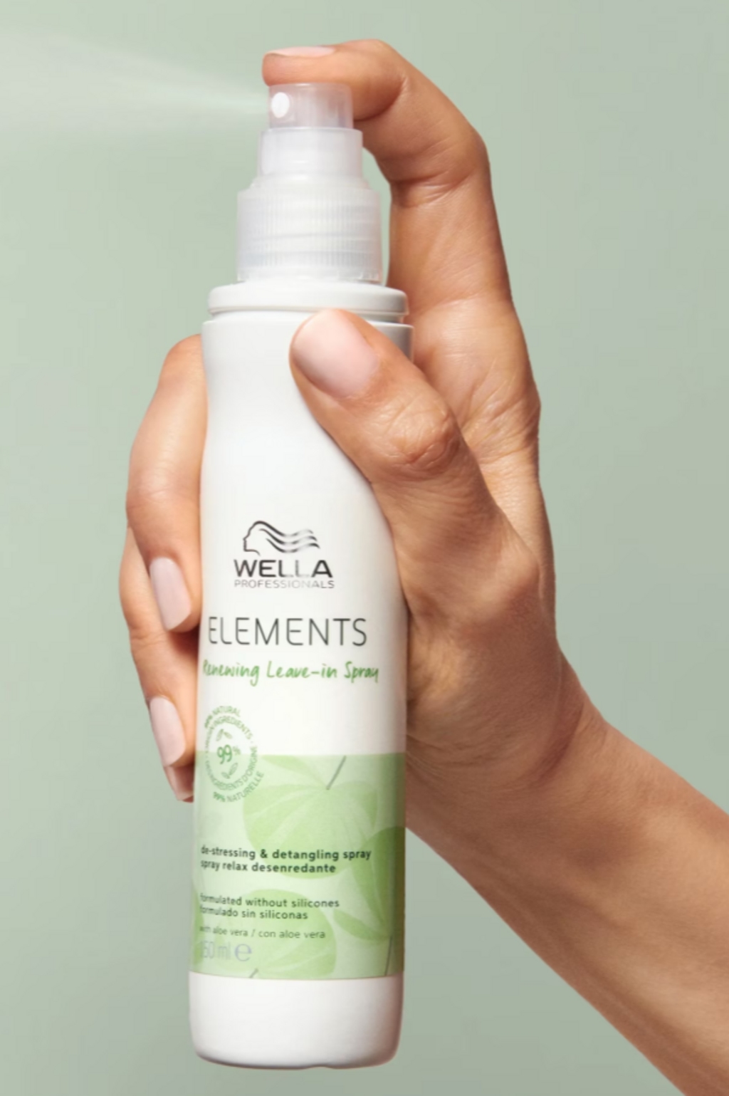 El spray sin aclarado Elements Renewing Leave-In Spray de Wella Professionals revitaliza el cabello al instante y aporta un acabado sedoso sin necesidad de aclarado. Su fórmula vegana, con hasta un 99 % de ingredientes de origen natural, no contiene siliconas ni sulfatos, por lo que resulta especialmente delicada incluso con cueros cabelludos sensibles. Enriquecido con aloe vera calmante, vitamina E protectora y esencia de oliva, ayuda a desenredar, controlar el encrespamiento y prevenir la rotura, dejando el cabello suave, brillante y visiblemente más bonito.