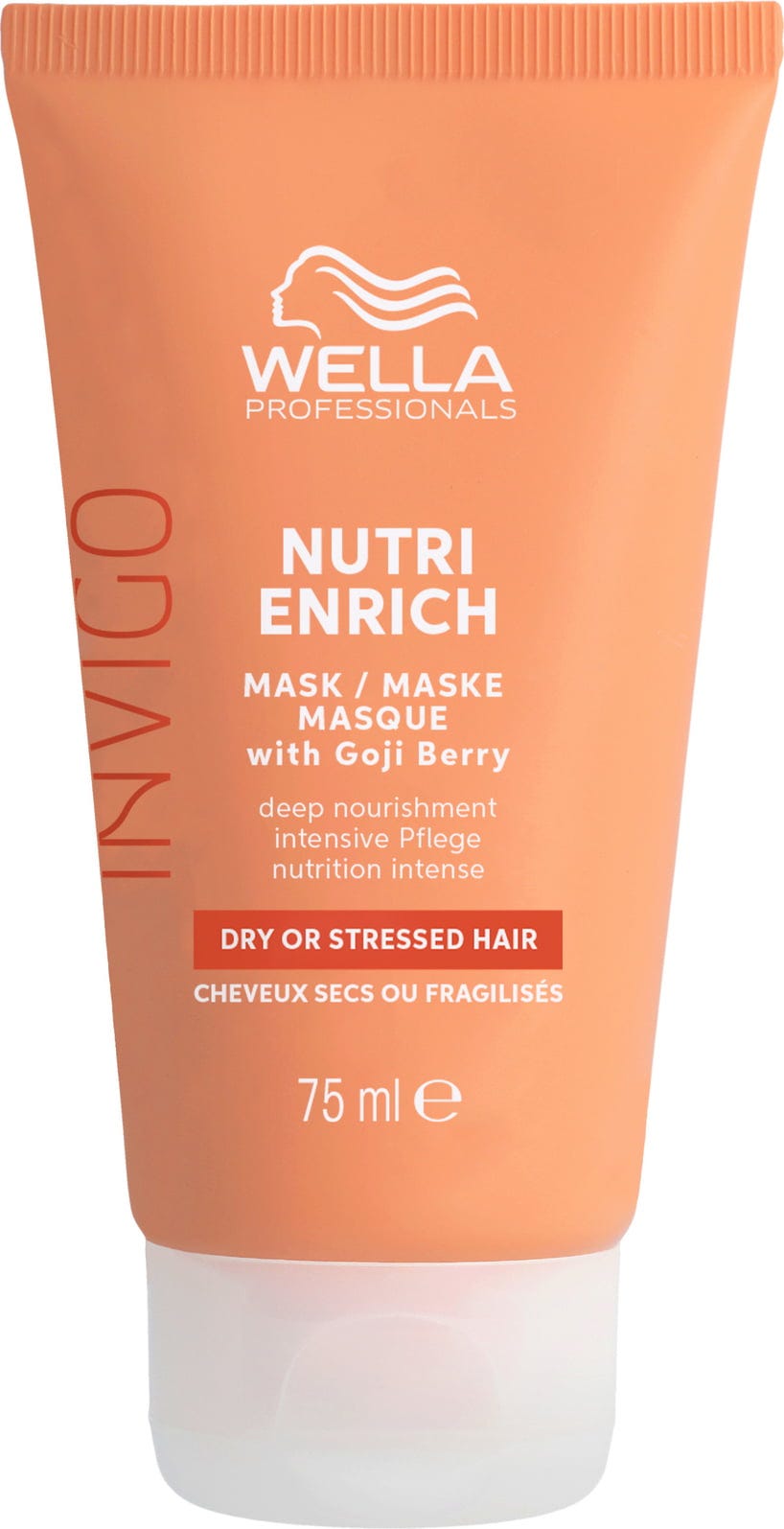 La mascarilla Invigo - Nutri Enrich, Mask de Wella Professionals es el tratamiento ideal para cabellos secos, dañados y castigados que desean recuperar su vitalidad. Formulada con el innovador complejo Nutri-Enrich, esta mascarilla aporta valiosos ácidos oleicos y pantenol en profundidad a cada mechón, hidratándolo y nutriéndolo intensamente. Gracias al superalimento bayas de goji, el cabello se revitaliza con una mezcla de vitaminas, minerales y péptidos, mientras que la vitamina E actúa como escudo protector frente a daños adicionales. Di adiós al encrespamiento y disfruta de una melena increíblemente suave y lisa. Para obtener resultados óptimos, se recomienda utilizarla junto al champú y al acondicionador Nutri Enrich.